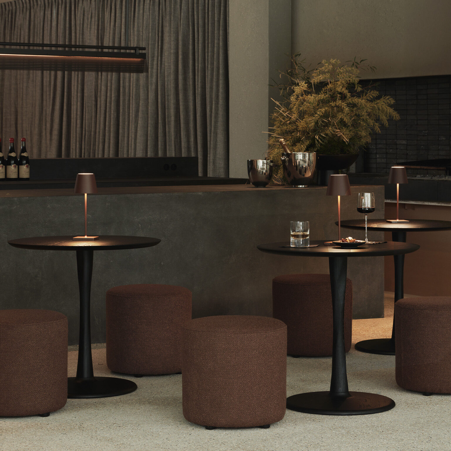 Airy with subtle complexities, the Torsion dining table incorporates advanced woodworking techniques to create a light solid oak table top with a torsaded base of sculptural elegance. This new 27″ height option makes Torsion ideal as a lounge style table.