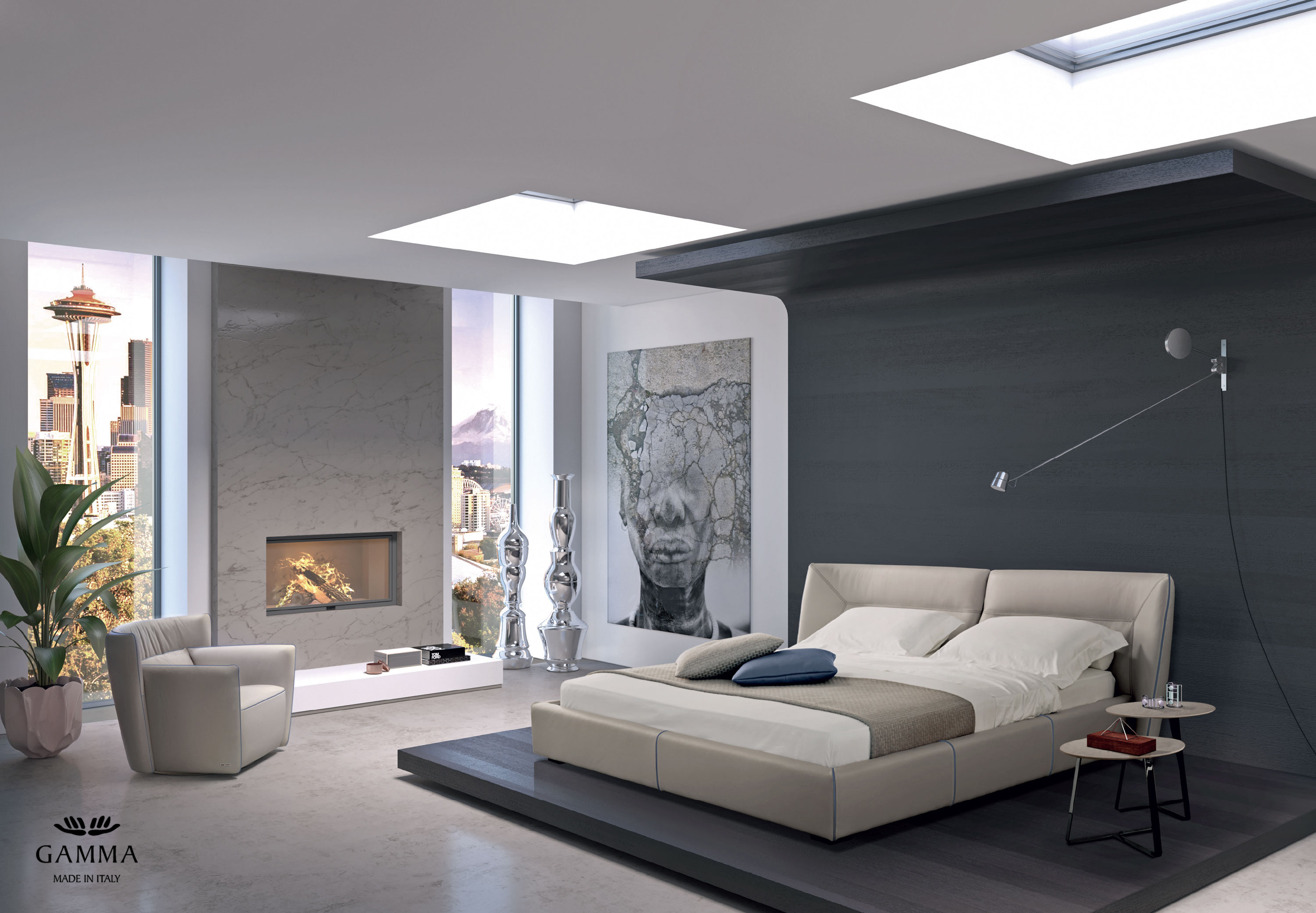 The Tulip bed is a beautiful piece with its distinctive cocooning embrace and amply upholstered silhouette. This bed is a part of the Gamma collection, a company known for their long-lasting quality and gorgeous leather selections. Pair with the matching Tulip Night bench, offered in wood or metal legs.