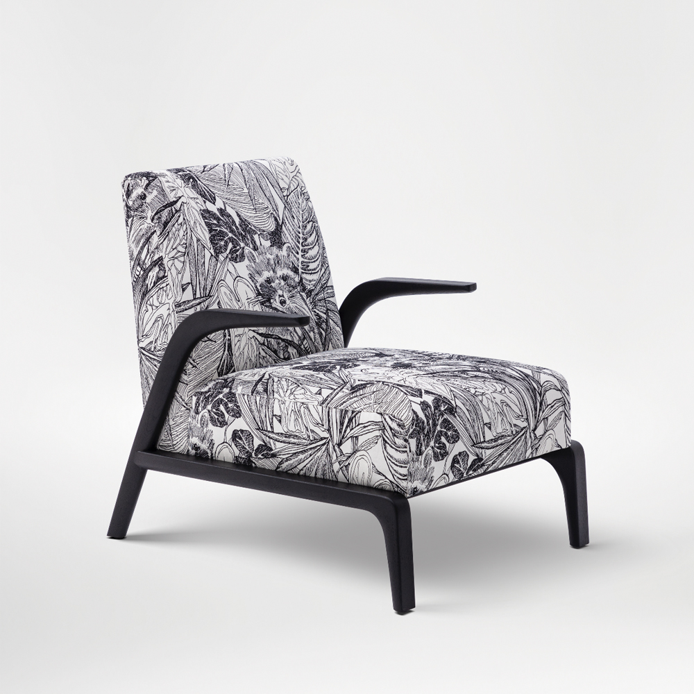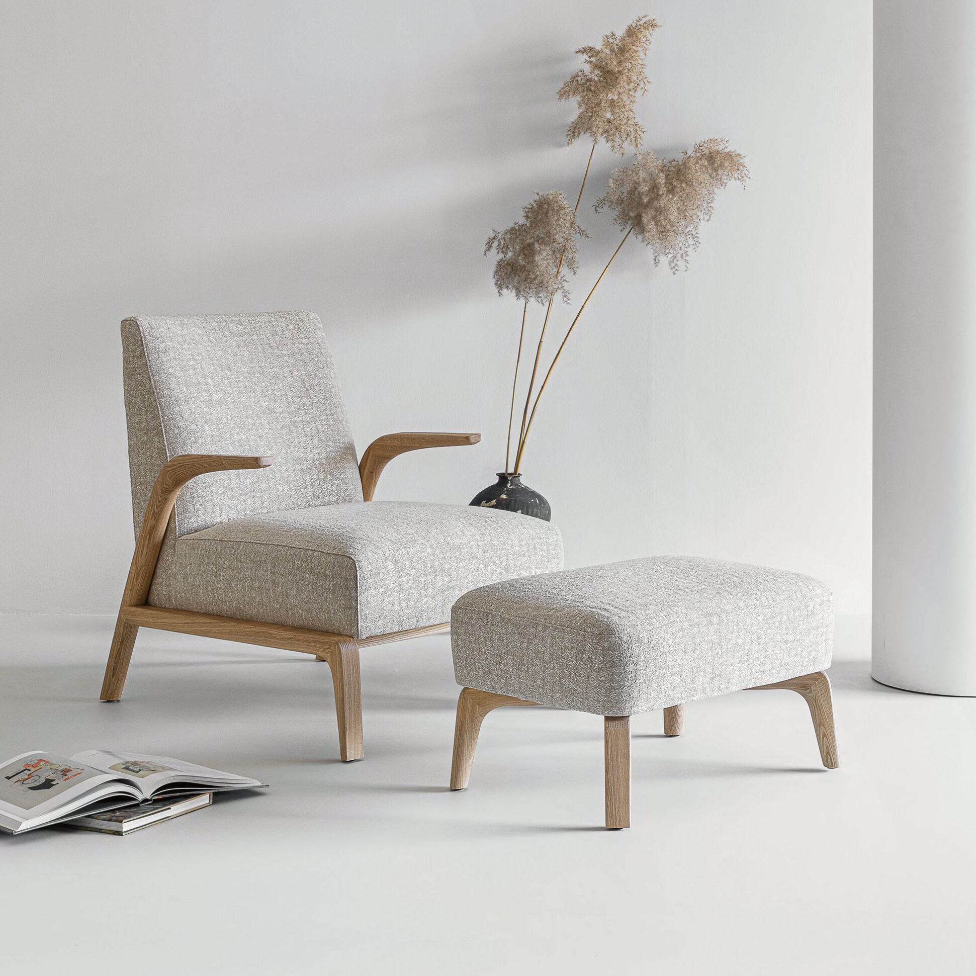 Always company ready, the Venus Chair adds flair to the modern room setting. Venus Chair makes a big statement with its sweeping curves and comfortably cushioned seat. The Venus frame is finished in Black Walnut or Natural Oak, flanked by pleasantly shaped arms which are tapered to perfection. Add the matching Venus Ottoman as a finishing touch.