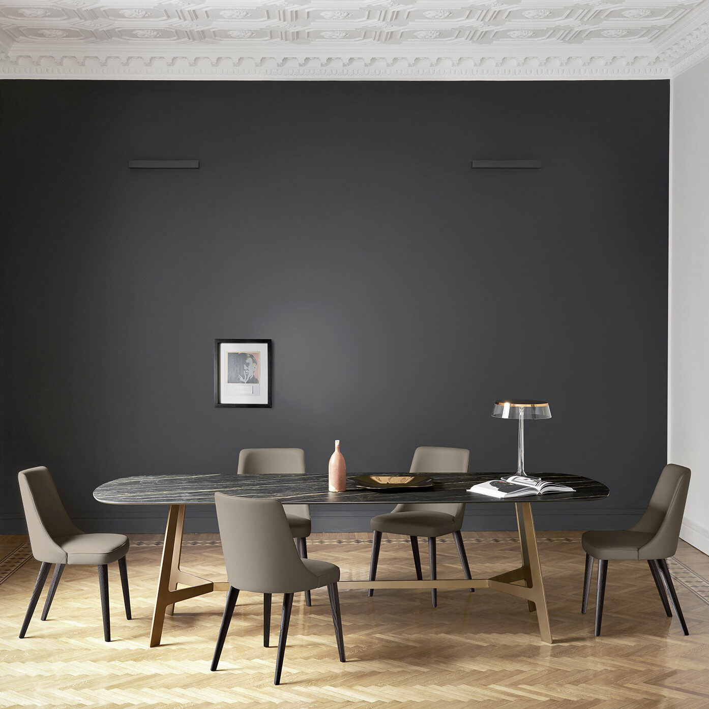 Base in dark brown or paitned brass metal