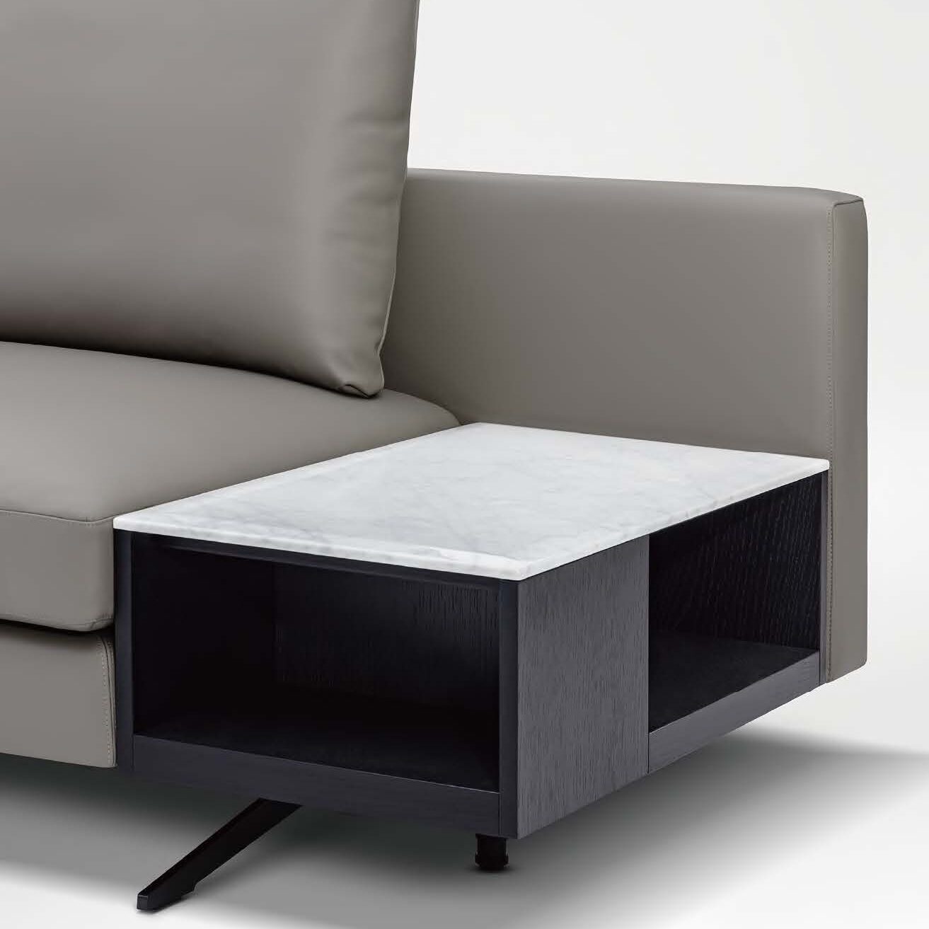 Sophisticated with an air of Mid-Century design, the Wake series by Camerich becomes the focal point of the modern home. Wake offers many modular component options – choose from available sofas or build your own composition. The Wake series may be upholstered in your choice of fabric or leather options (combinations also available). An optional table component topped in Grey Oak wood or Carrara marble. The Wake series is topped with channeled down for a cozy sit and paired with an optional a-la-carte toss pillow. A unique crossed base in dark steel completes the design.