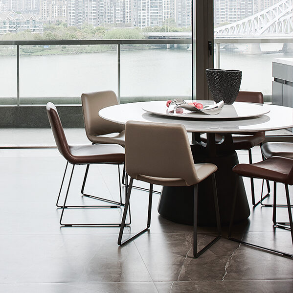 The Waltz Plus Chair boasts tapered seats and a slender profile floating atop defined steel legs. This chair is fully cushioned and upholstered in your choice of fabric or leather upholstery.